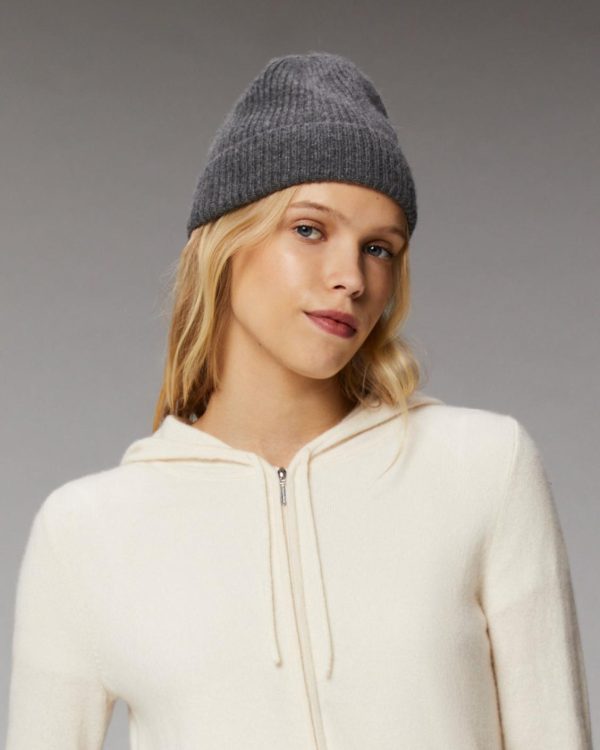 FROM FUTURE Bonnets En Cachemire | Bonnet À Revers À Petites Côtes Anthracite Unisexe
