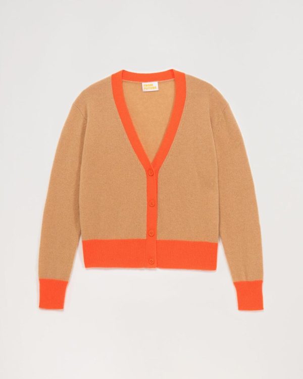 Cardigan à col V. Coupe légèrement crop, pour une silhouette flattée. On adore le jeu de couleurs qui tranche, et qui lui donne ce petit côté « ‘uniforme de fac américaine » vintage. A porter sur un tee-shirt, une robe ou même une chemise !