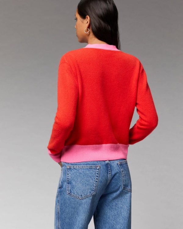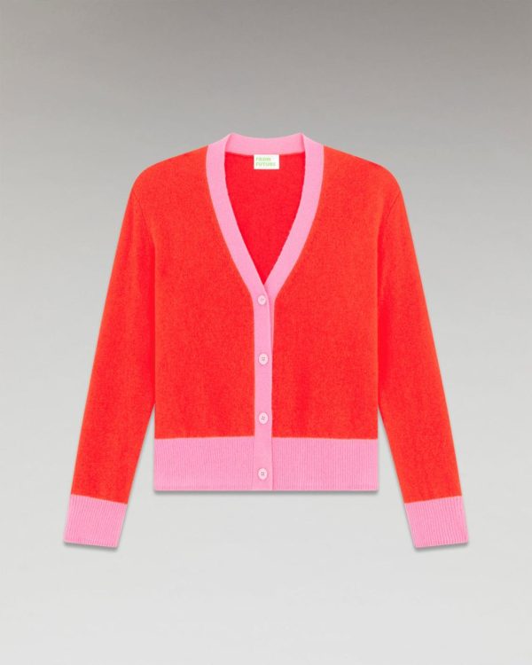 Confectionné en cachemire 2 fils, ce cardigan court et bicolore confère une allure avant-gardiste tout en douceur et légèreté. Muni d’un col en V, de manches longues et d’une fermeture boutonnée, ses bords contrastés viennent audacieusement structurer votre silhouette futuriste. À porter seul ou en superposition, mixez-le à un jean décontracté ou une jupe fluide.