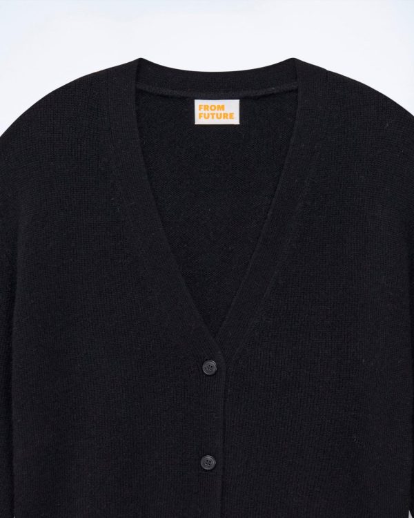 Réchauffez votre silhouette de saison avec ce pull cardigan court et oversize, confectionné en cachemire 4 fils. Muni de manches longues et de bords côtelés, il dévoile un col en V et une fermeture boutonnée. Pièce indispensable du vestiaire From Future, il se porte aussi bien seul qu’en superposition.