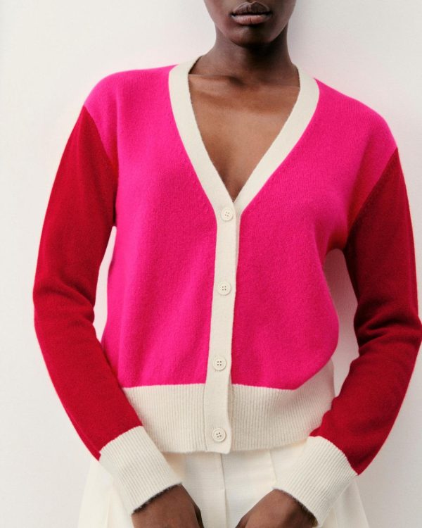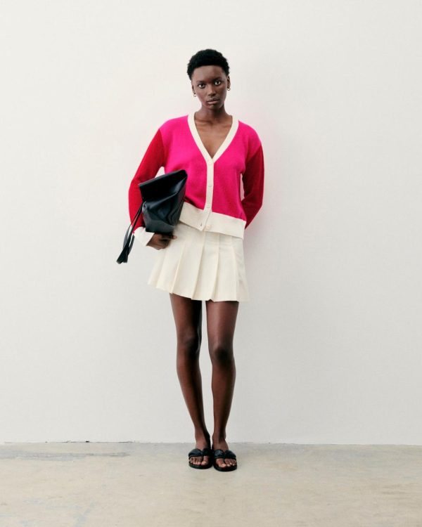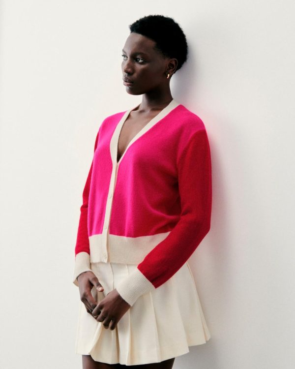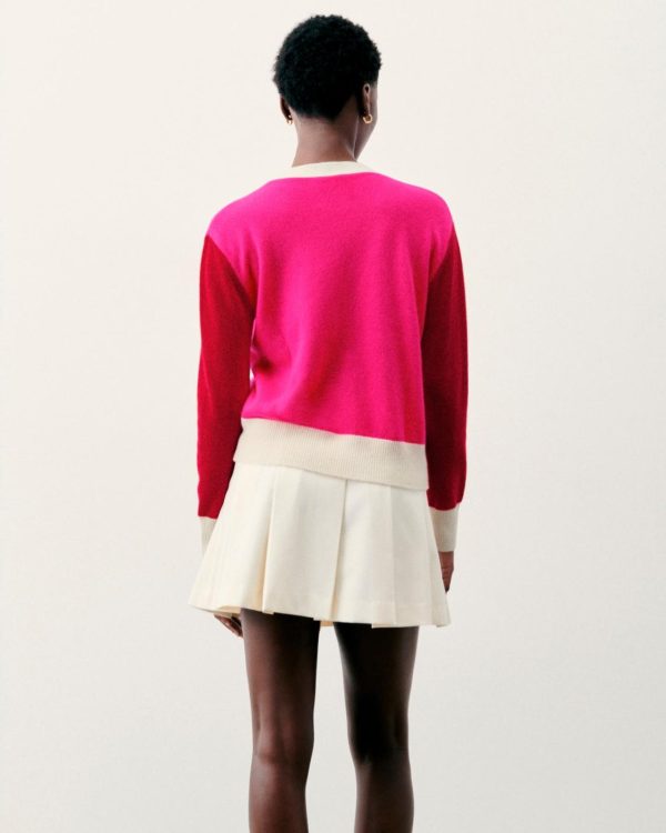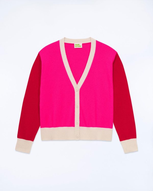 Traversez le futur à la pointe du style avec ce pull cardigan court en cachemire. Orné d’un jeu de contrastes tricolores, il dévoile un col V, une fermeture boutonnée, des manches longues et des bords côtelés. Complétez votre look chic et casual avec un jean ample ou une jupe fluide.