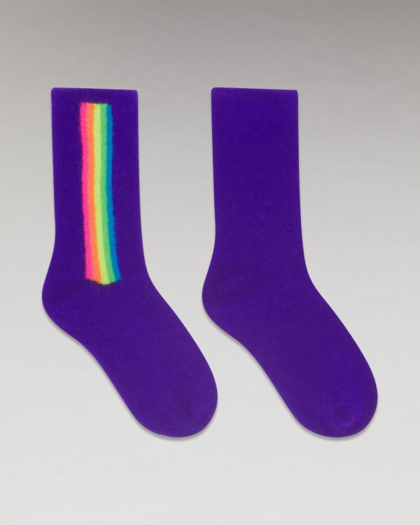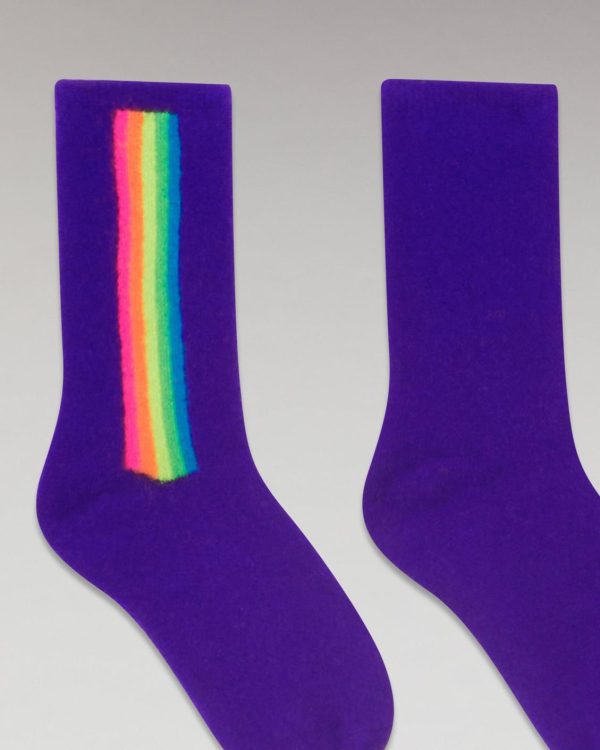Confectionnées en cachemire 4 fils, ces chaussettes mi-hautes transcendent le temps et l’espace, vous invitant dans un voyage cosmique. Côtelées et ajustées, des bandes aux couleurs vibrantes se révèlent sur les chevilles. Mêlant audace et style, elles illumineront vos silhouettes casual.
