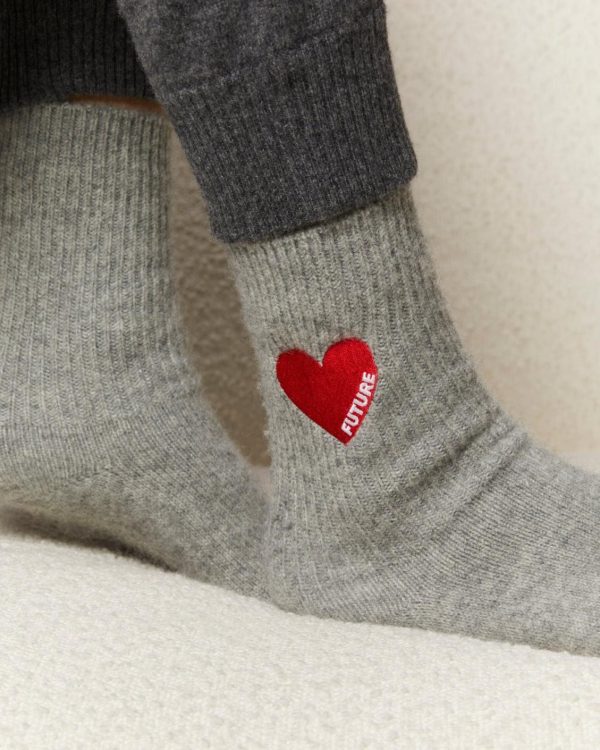 Décliné dans un colorama inédit, ces chaussettes mi-hautes viennent rehausser votre silhouette futuriste avec éclat. Confectionnées en cachemire 4 fils, un cœur brodé « Future » se dévoile, vous invitant à rejoindre le Club. Côtelées et ajustées aux chevilles, elles se portent sans modération et autorisent tous les styles.