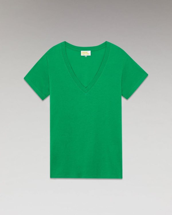 FROM FUTURE Chemises, T-shirts & Tops | T-Shirt Col V Basique Summer Green Femme