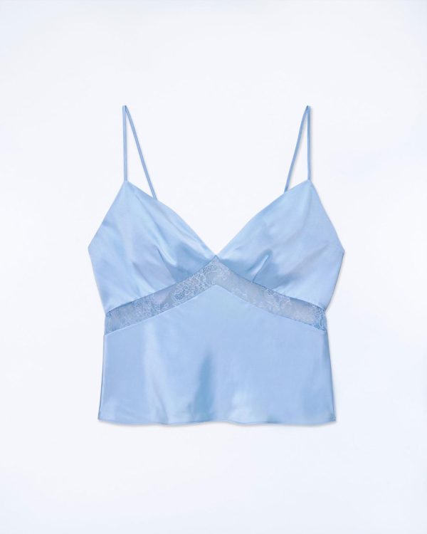 Incarnant l’élégance cosmique, ce top court et ajusté est confectionné en satin de soie léger et soyeux. Muni d’un décolleté en V et de bretelles fines, il se pare de bandes de dentelle. Jouez le total look chic en l’associant à une jupe longue fluide et une paire d’escarpins.