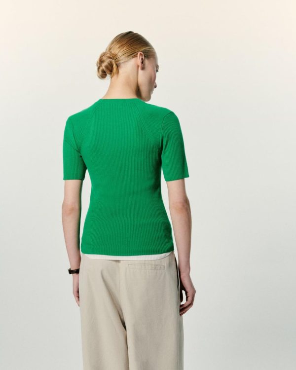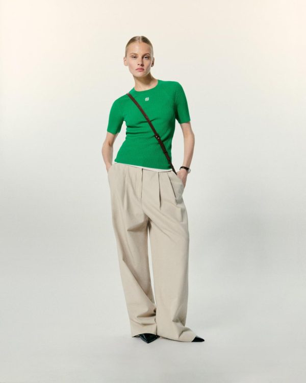 Un vent de fraîcheur souffle sur votre vestiaire. Confectionné en laine mérinos, ce top bicolore arbore un détail signature à l’avant. Muni d’un col rond côtelé et de manches courtes, il se porte à même la peau pour une silhouette parfaitement ajustée. À la fois chic et casual, mixez-le à un jean ample ou une jupe fluide.