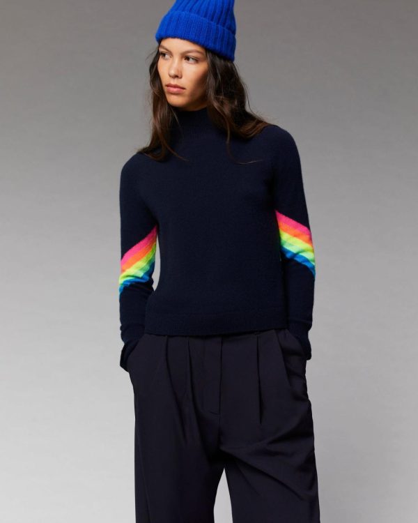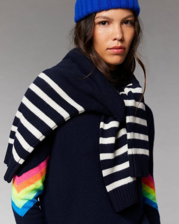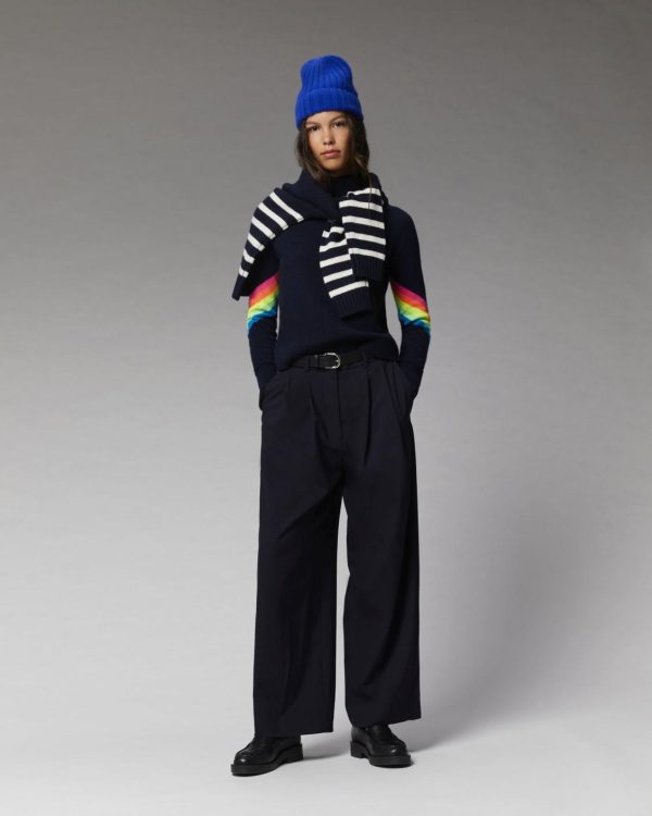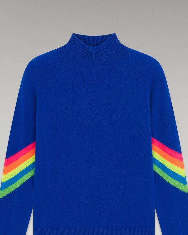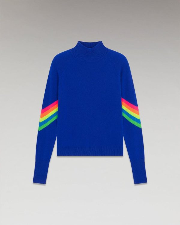 FROM FUTURE Cols Montants Cachemire | Pull Col Montant Bandes Manches Multico Léger Pop Blue Femme
