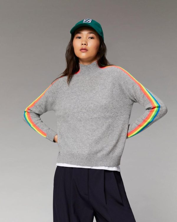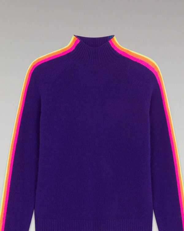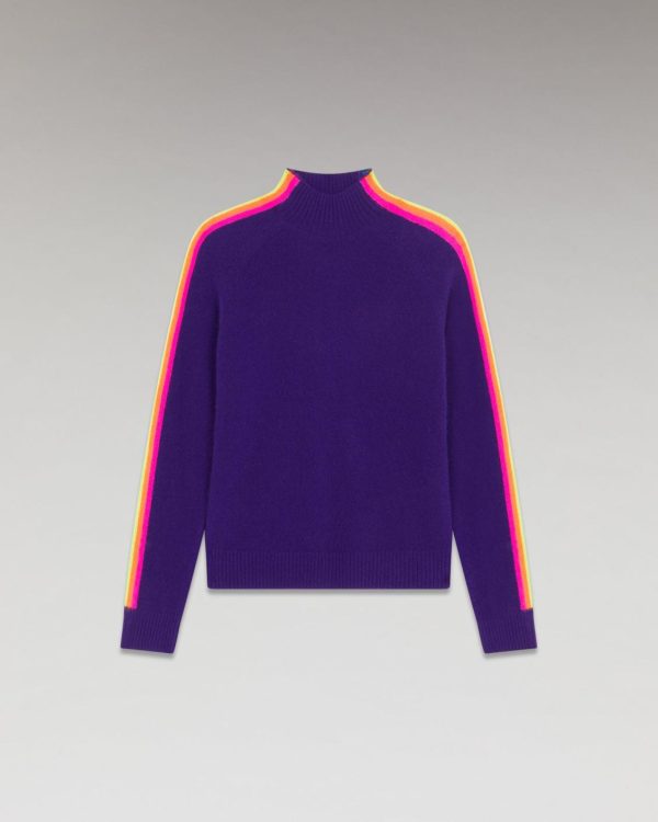FROM FUTURE Cols Montants Cachemire | Pull Col Montant Bandes Manches Multicolore Léger Winter Purple Femme
