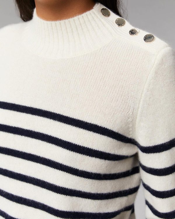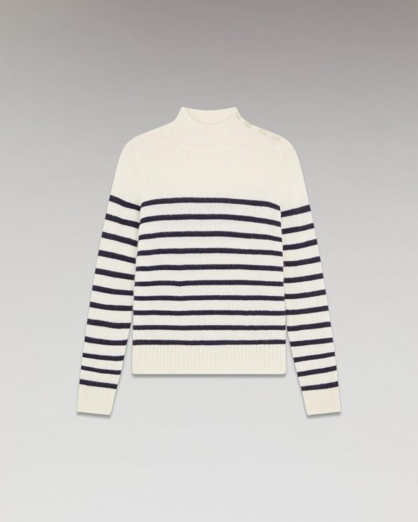 FROM FUTURE Cols Montants Cachemire | Pull Col Montant Marinière À Boutons Ecru Femme