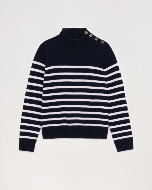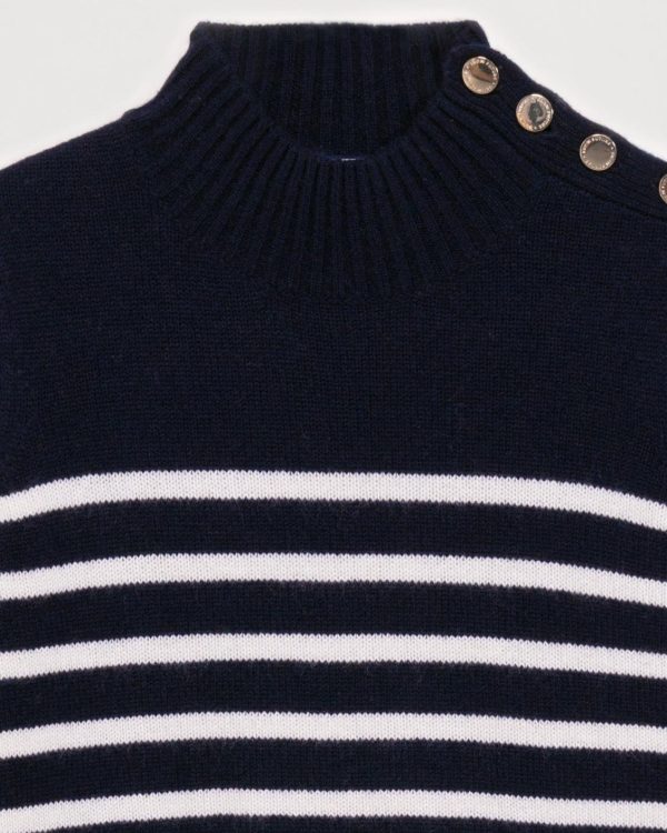 FROM FUTURE Cols Montants Cachemire | Pull Col Montant Mariniere A Boutons Navy Femme