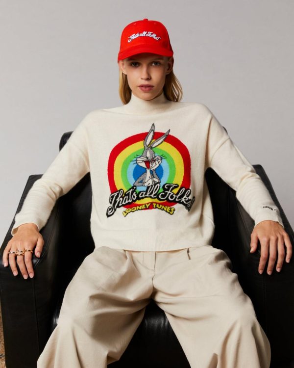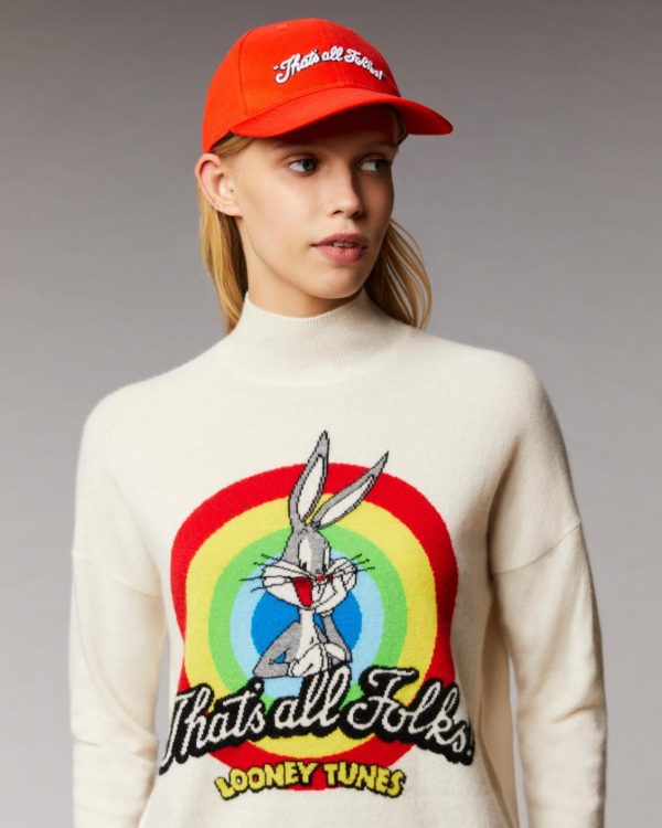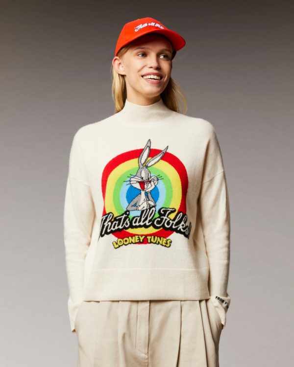 FROM FUTURE Cols Montants Cachemire | Pull Col Montant That’s All Folks Looney Tunes Ecru Femme