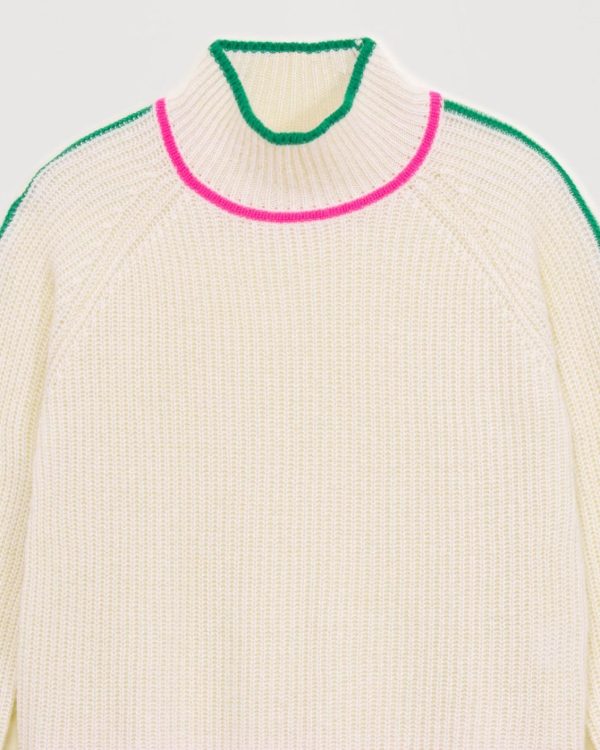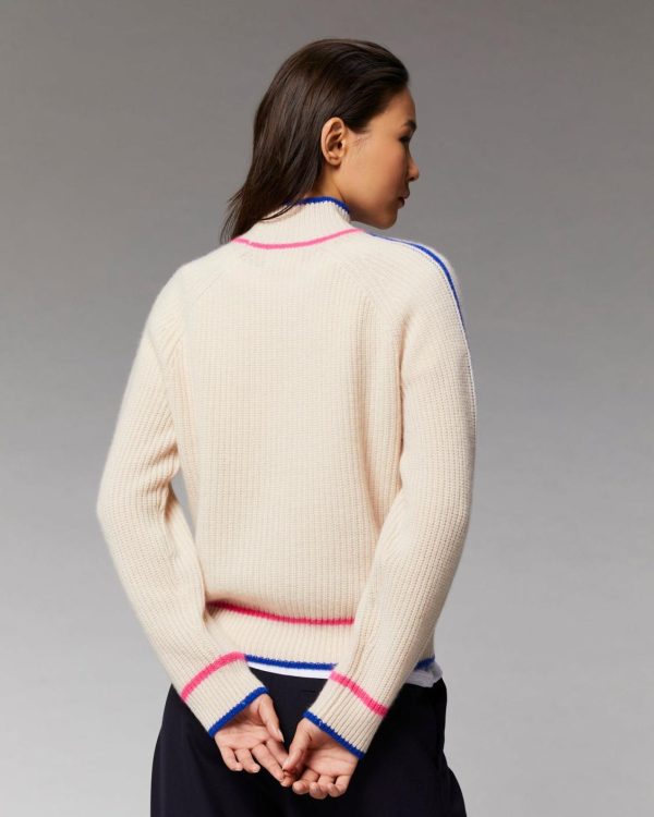 FROM FUTURE Cols Montants Cachemire | Pull Col Montant Tricolore Maille Perlee Ecru Femme