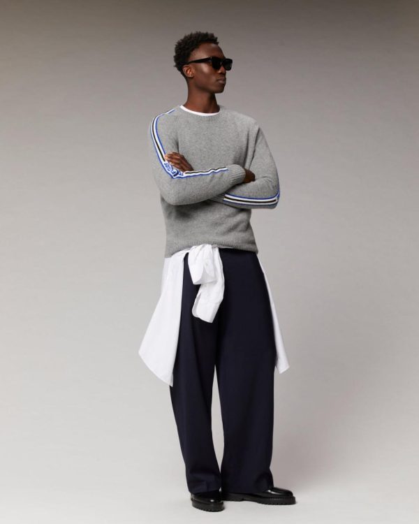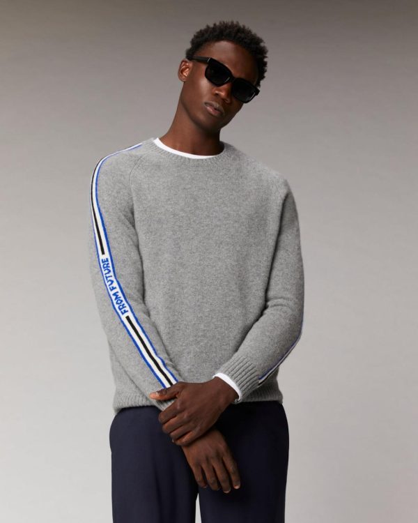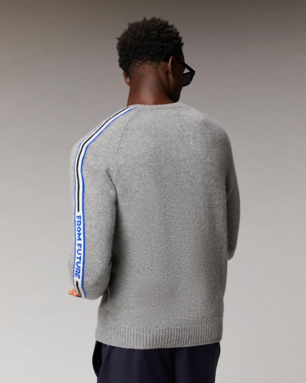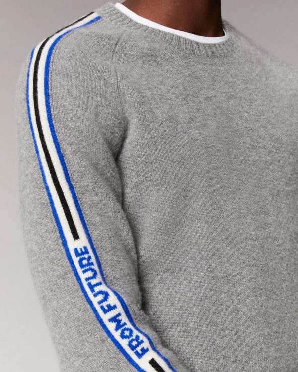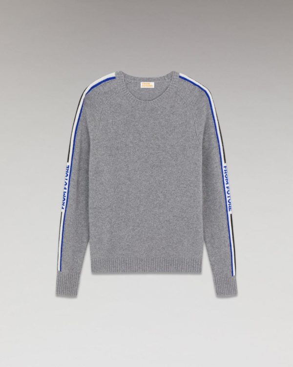 FROM FUTURE Cols Ronds Cachemire | Pull Col Rond Bandes Future Gris Chiné Foncé Homme