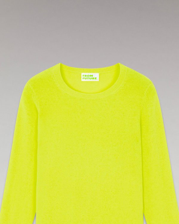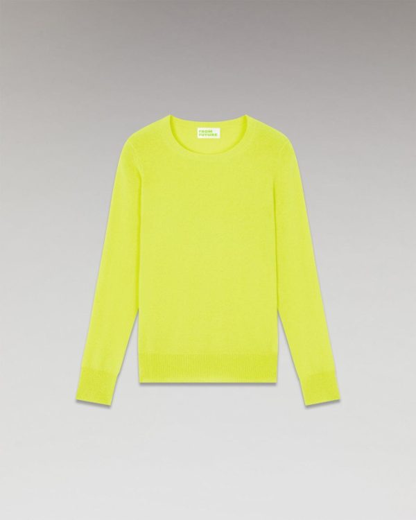 FROM FUTURE Cols Ronds Cachemire | Pull Col Rond Basique Jaune Fluo Femme