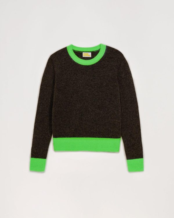 FROM FUTURE Cols Ronds Cachemire | Pull Col Rond Bicolore Léger Anthracite Femme