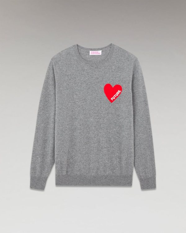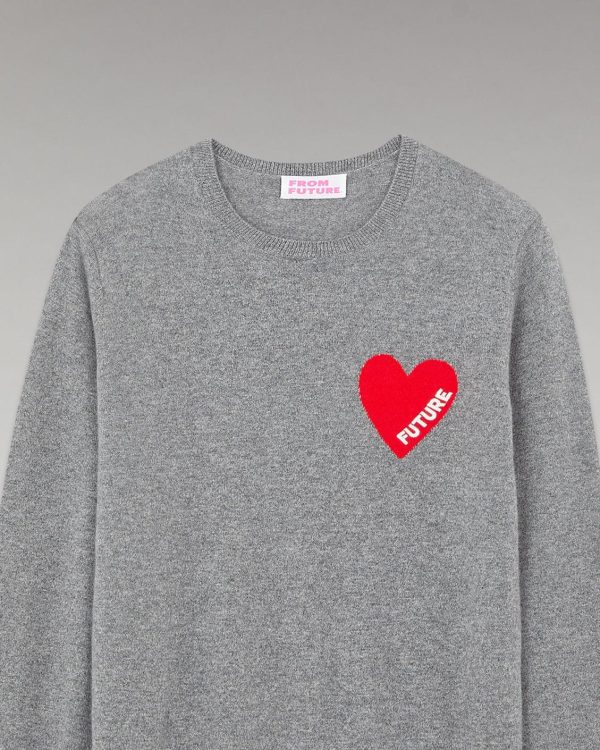 FROM FUTURE Cols Ronds Cachemire | Pull Col Rond Coeur Gris Chiné Foncé Homme