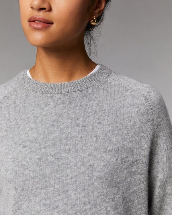 FROM FUTURE Cols Ronds Cachemire | Pull Col Rond Oversize Léger Gris Chiné Clair Femme