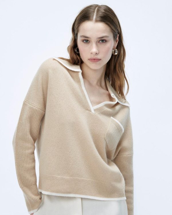 Confort cosmique et style futuriste : misez sur la douceur de ce pull bicolore confectionné en cachemire 2 fils infiniment doux. Muni de manches longues et d’un col polo, il dévoile des liserés contrastés et des poignets en maille perlée.