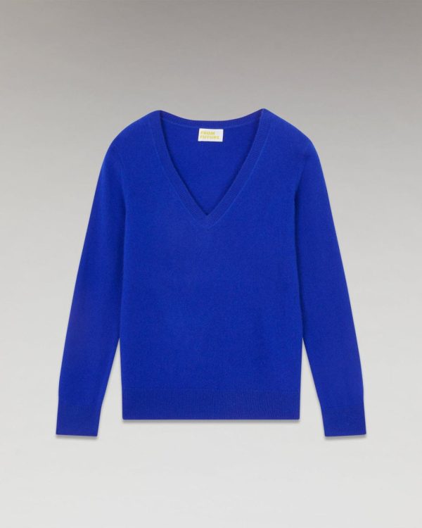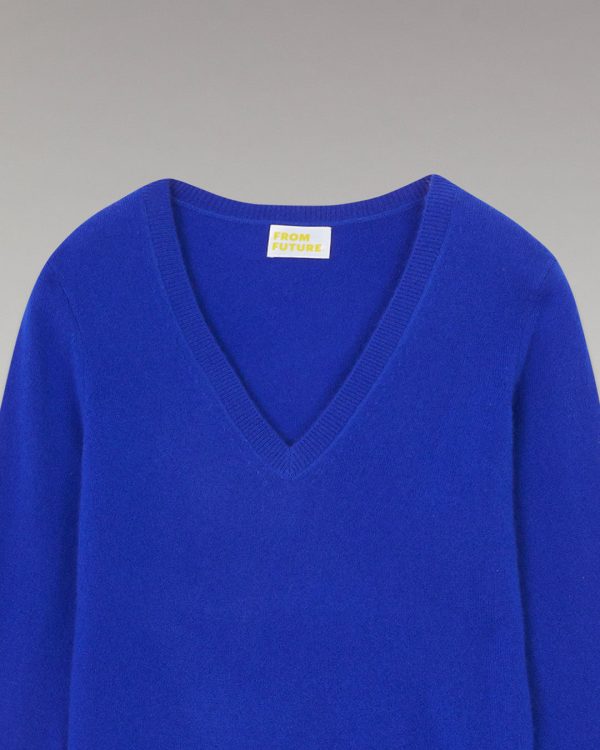 FROM FUTURE Cols V Cachemire | Pull Col V Basique Pop Blue Femme