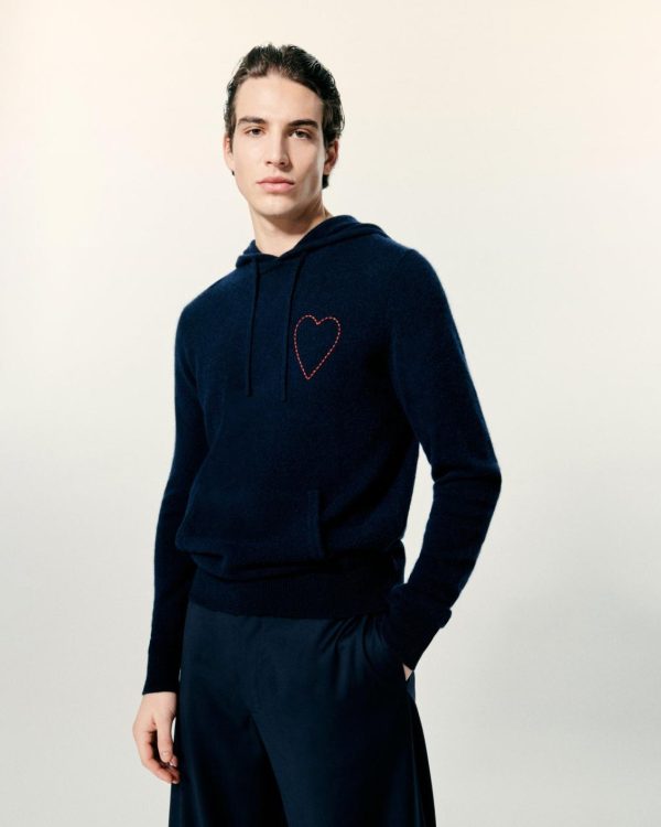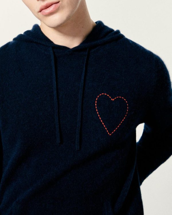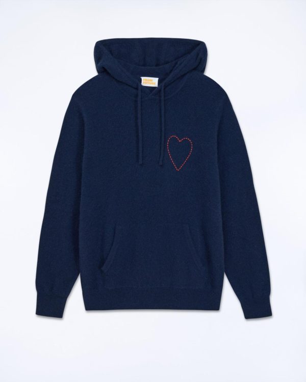 FROM FUTURE Hoodies | Pull Hoodie Coeur Brodé Navy Homme