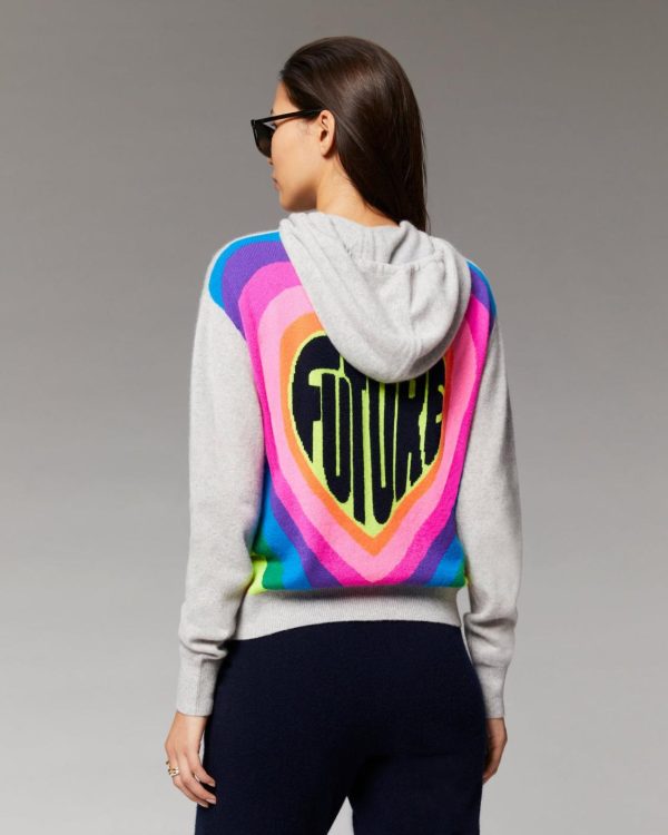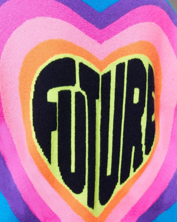 Confectionné en cachemire 2 fils, ce pull hoodie court et oversize révèle une allure avant-gardiste et cosmique. Muni d’une capuche et de manches longues, il révèle un imprimé multicolore orné d’une signature « FUTURE » au dos. Alliant confort et audace, associez-le à un jogging casual ou un jean droit.