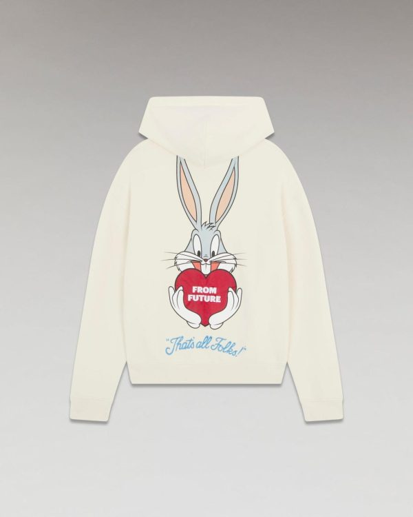 Ce sweatshirt hoodie molletonné est muni d’une capuche à cordons, de manches longues et d’une poche. Signé d’un Looney Tunes et d’un From Future sur la poitrine, il dévoile un Bugs Bunny au dos ainsi qu’un emblématique « That’s all Folks! » brodé.