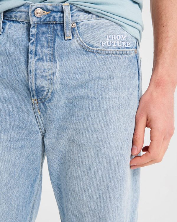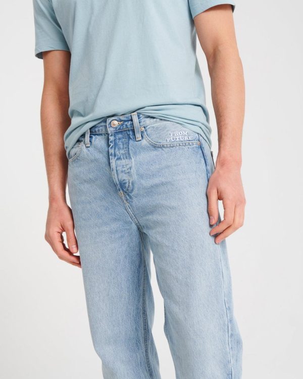 Tout savoir sur Josh : Jean coupe baggy pour un effet oversize. Broderie « FROM FUTURE » semi-cachée au niveau de la poche gauche. Jacron coloré à l’arrière. Fermeture par boutonnage siglé sur le devant.