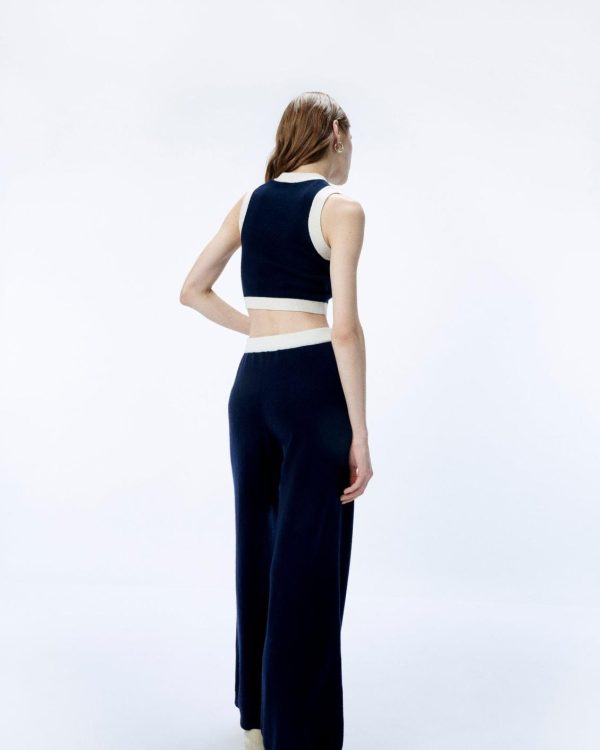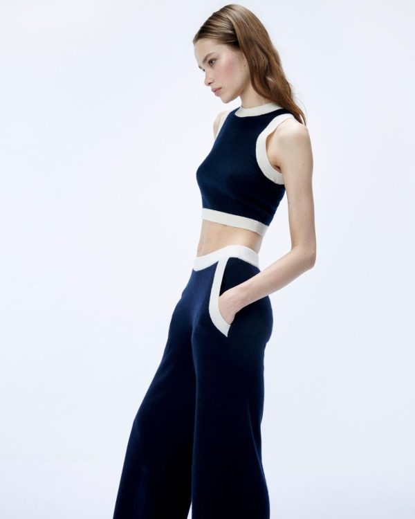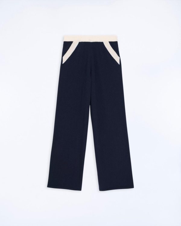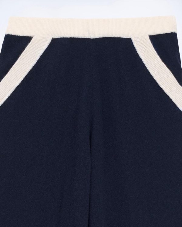 Embarquement immédiat vers un style empreint de douceur : ce pantalon de jogging large est confectionné en cachemire 2 fils et dévoile des bandes contrastées à la ceinture et aux poches.