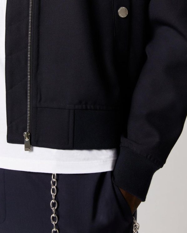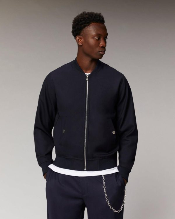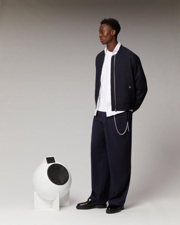 L’indispensable veste teddy oversize aux lignes futuristes trouvera une place de choix dans votre vestiaire masculin. Confectionnée à partir de laine, elle est munie de manches longues, d’une fermeture zippée, de deux poches à boutons pression et de bords contrastés et côtelés. Facile à associer, complétez votre look avec un t-shirt en coton et un jean décontracté.