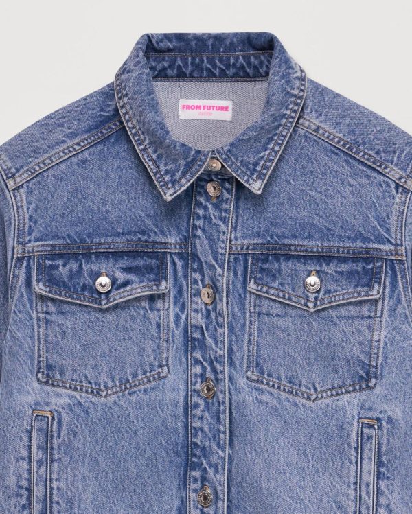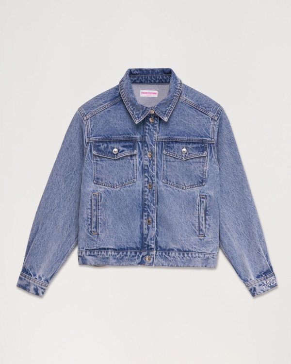 Rejoignez le LOVE CLUB dans cette veste en jean boutonnée à manches longues qui affiche de multiples poches, un patch contrasté au dos et une broderie « FROM FUTURE » au poignet.