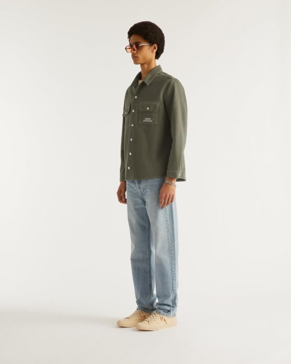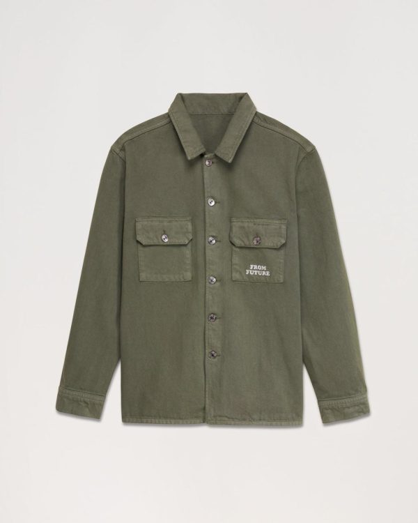 Contrastée d’une broderie « From Future », cette veste surchemise en coton est munie de manches longues, de poches à rabat et de boutons.
