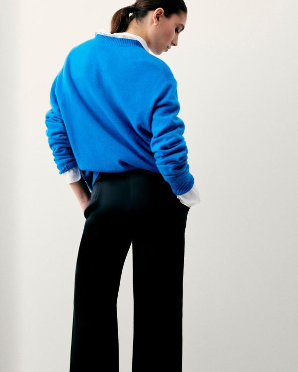 Ce pantalon large et oversize dessine une silhouette élancée, évoquant les horizons infinis du futur. Confectionné en satin de soie brillant et soyeux, il dévoile deux poches, un jeu de plis et un tombé impeccable pour une allure structurée en toute fluidité. À porter sans modération, il s’adopte avec une maille légère ou une chemise structurée.