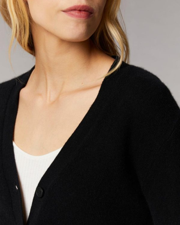 Cardigan à coupe courte. Boutons tons sur tons siglés et bouton de rappel. Le pull de mi-saison idéal à porter seul ou par dessus une jupe ou une robe en soie. Un bon basique du vestiaire FROM FUTURE, disponible dans 13 couleurs. Le plus léger de nos cachemires, le plus étudié aussi : 2 fils tricotés en déjaugé pour une maille aérienne et moelleuse, confortable quelque soit la saison.
