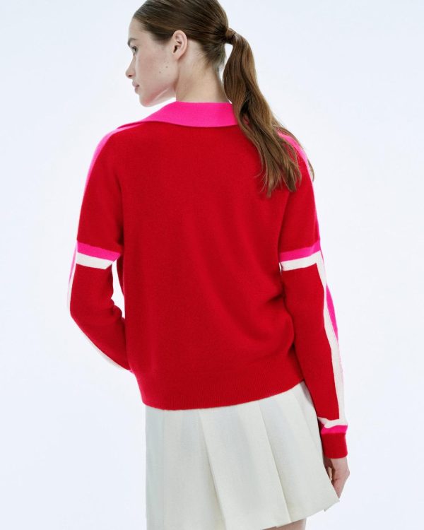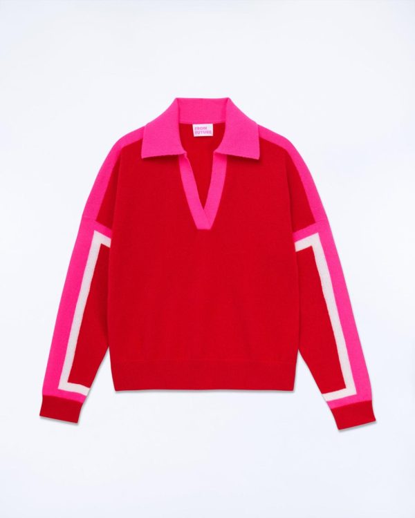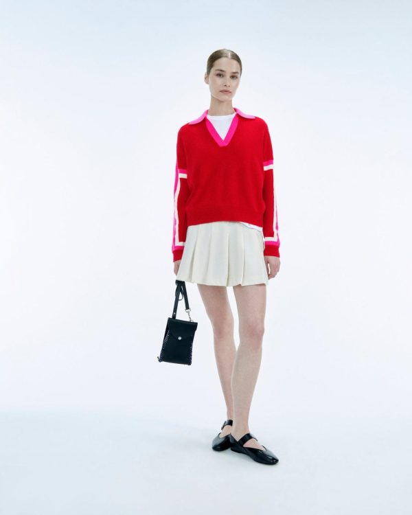 Nuances vibrantes et jeux de lignes futuristes pour ce pull oversize tricolore. Confectionné en cachemire 2 fils, des bandes contrastées apportent un supplément d’audace à la silhouette structurée. Muni d’un col polo et de manches longues, il se mixe à votre denim préféré.