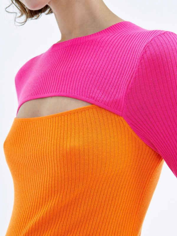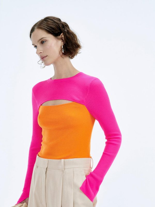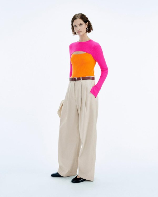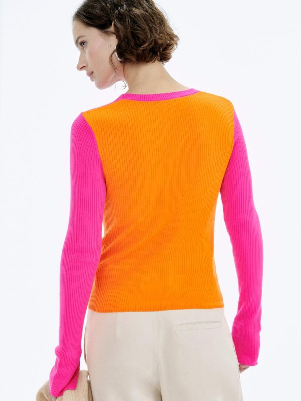 FROM FUTURE Pulls En Laine Mérinos | Pull Col Rond Boutons Nacrés Beach Orange Femme