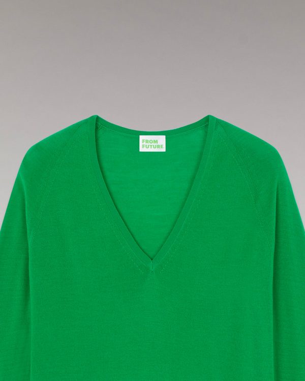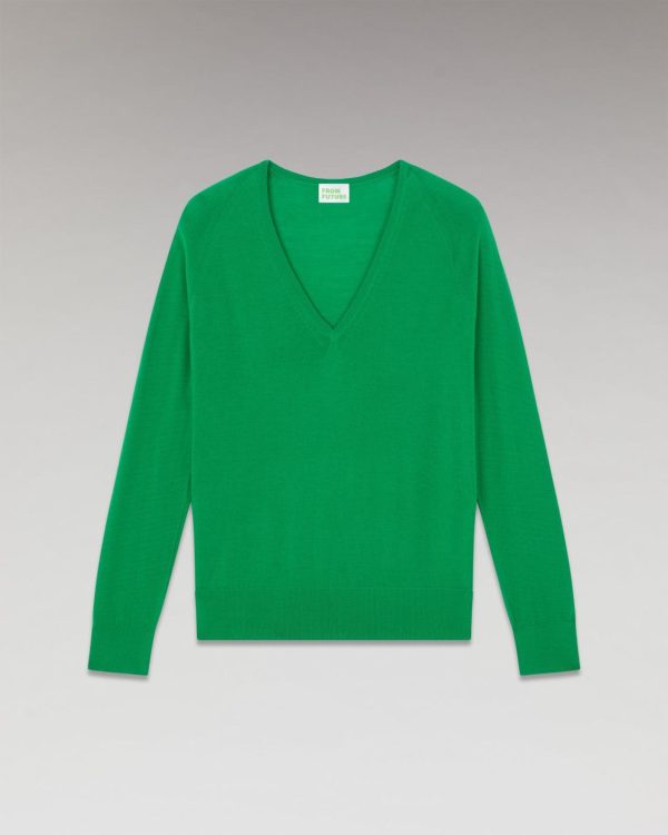 FROM FUTURE Pulls En Laine Mérinos | Pull Col V Oversize Summer Green Femme