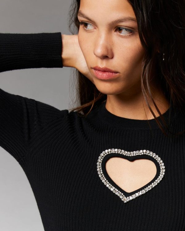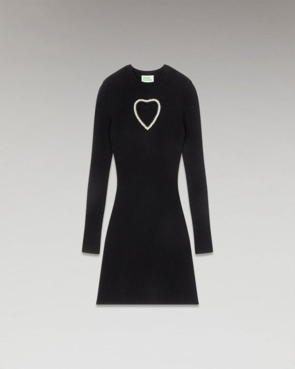 FROM FUTURE Robes Et Combinaisons | Robe Courte Manche Longue Coeur Strass Noir Femme