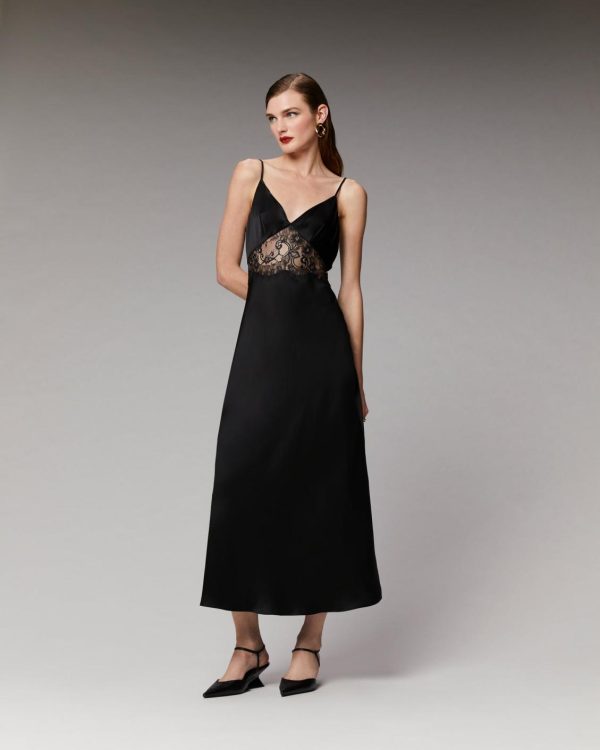 Confectionnée en satin de soie léger, brillant et soyeux, cette robe longue mêle sophistication intemporelle et audace futuriste pour sublimer toutes vos occasions. Munie de fines bretelles ajustables et d’un décolleté en V, elle dévoile un tombé fluide et un jeu de transparence avec des découpes en dentelle à l’avant et au dos. Côté accessoires, misez sur avec des bijoux et une paire d’escarpins.