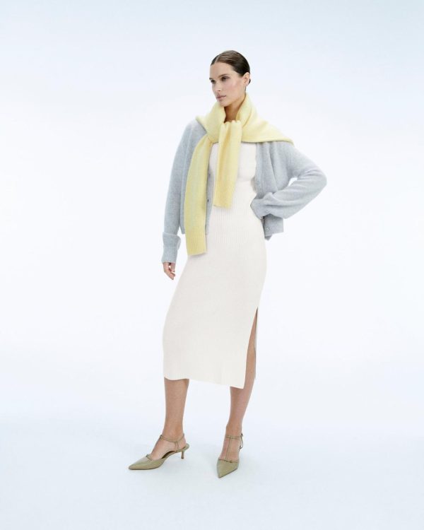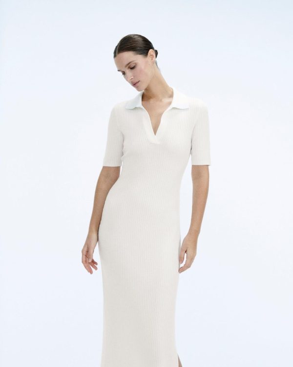 Confectionnée en laine mérinos, cette robe longue et côtelée vous enveloppe d’une douceur infinie. Ornée d’un détail signature à la poitrine, elle dévoile un col chemise en V, des manches courtes soulignées de bords contrastés et une fente sur le bas. À la fois chic et casual, complétez votre look avec une paire de sneakers ou d’escarpins.